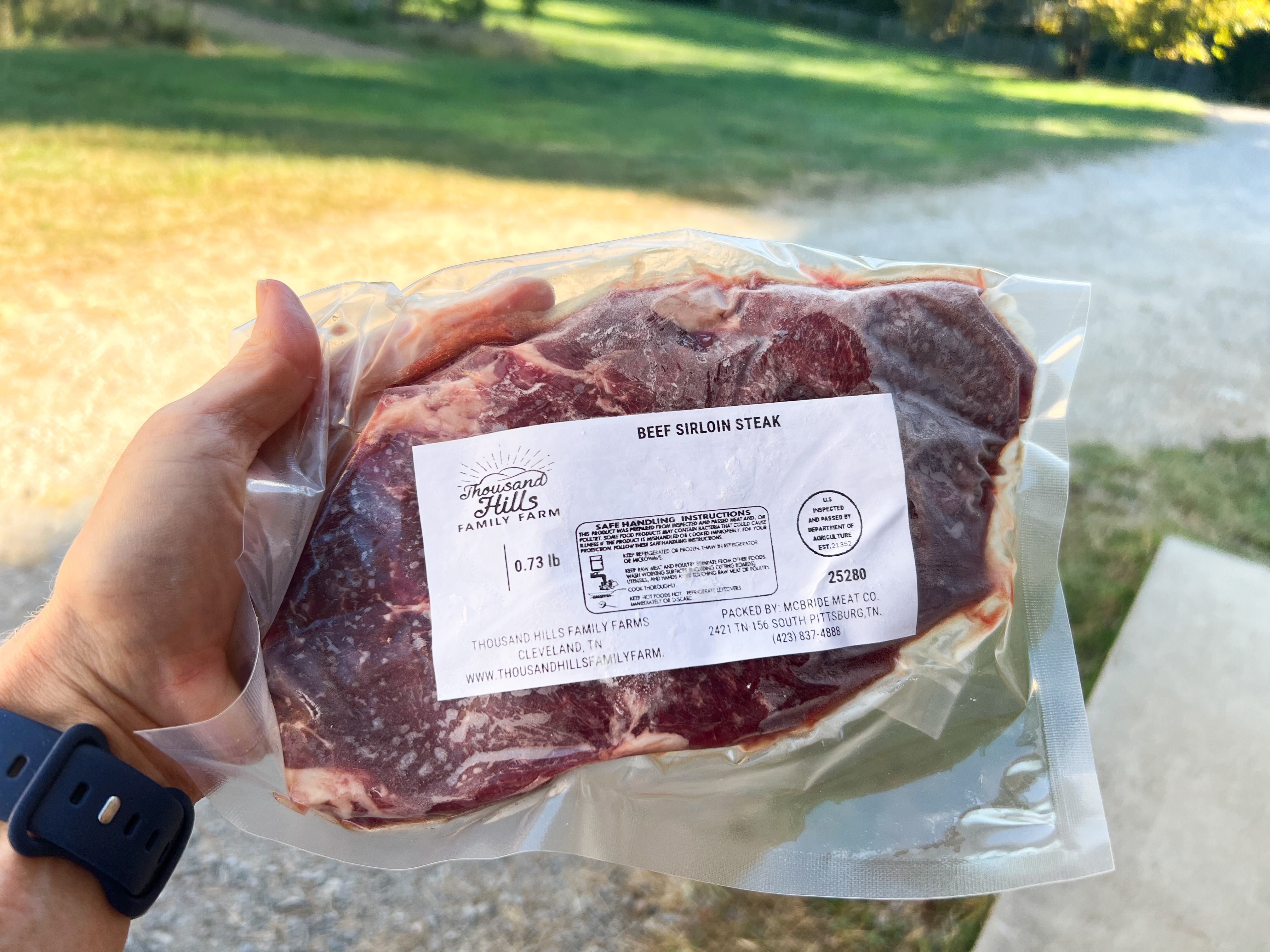 Our butcher cut these thin this time, which means these are perfect for breakfast steaks! I thawed one super quickly on restock day, threw it on the grill for a few minutes & stuck it on a biscuit for a quick supper!